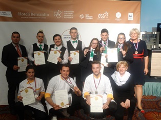 V ponedeljek, 8. 10. 2018, smo se z ekipami naše šole udeležili ekipnih tekmovanj dijakov na 65. GTZ-ja v Portorožu. Ekipa strežbe v sestavi Sara Radaković, Jasmina Poljak in Jure Rozman pod mentorstvom Roka Zupana je pripravila koktejl, filirala ribo, iz nje pripravila hladno začetno jed in postregla gostji. Za opravljeno delo so dijaki prijeli zlato priznanje. Dijaki smeri turizma Alen Golobič, Ula Gliha in Anita Sinjur z mentorico Slavico Šter so se dobro odrezali v znanju iz turizma in prejeli bronasto priznanje in bronasto kolajno. Ekipa kuharstva Nejc Markelc, Tilen Utenkar in Špela Kuhel pod mentorstvom Anice Oblak Janko pa so iz sestavin iz »magic boksa« ter dodatnih živil s tržnice pripravili okusno in estetsko jed ter osvojili zlato priznanje in srebrno kolajno.